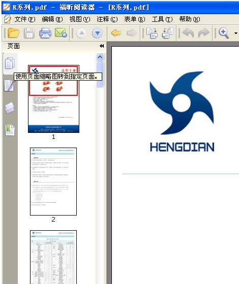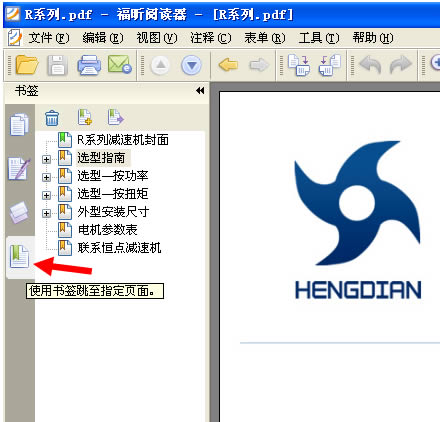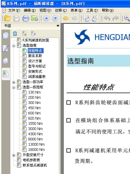 4: 打開一個PDF文件後,本例以打開 恒點傳動公司的R系列産品爲示範 ,看下軟件的左上角,如下圖 :