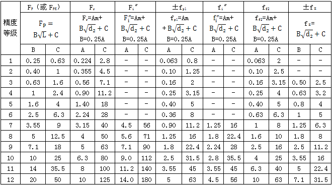 注:①當三個公差組的精度等級不同時,按量高精度等級確定公差 。