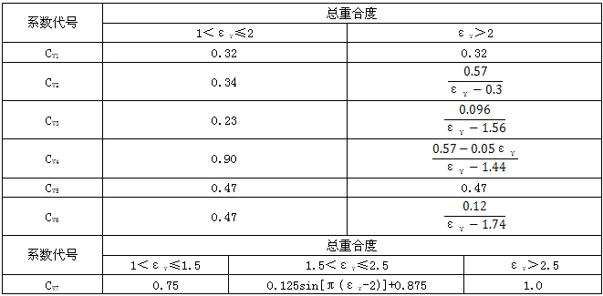 表2系數CV1~CV7的計算公式