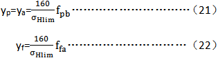fpbeff、f­paeff——分别爲有效基圓齒距偏差和有效齒廓形狀偏差,μm;fpbeff和fpaeff爲跑合後的值 ,根據相應的跑合量yp和yf(μm)確定: