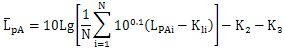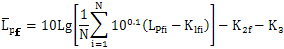 LPfi——第i測點的頻帶聲壓級 ,dB;