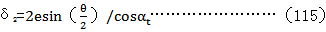 式中:θ——齒(chǐ)線(xiàn)在分度圓柱面上所占的圓周角,(°)